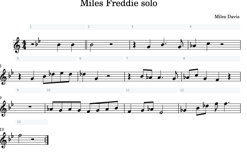Learn the solo with the notes by playing along with the Mile’s solo. The video is attached here. It is in a loop so you can practice it many times!